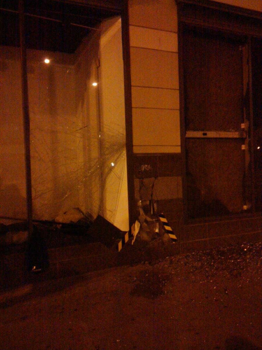 Protesters ignite several trash fires throughout downtown Oakland, as police in riot gear move in near Broadway and Grand Avenue. By Oakland Voices correspondent Dawneka Akins.Many downtown businesses, including this Sears at 20th Street and Broadway, had their storefronts broken during tonight's protests and looting. By Oakland Voices correspondent Dawneka Akins.