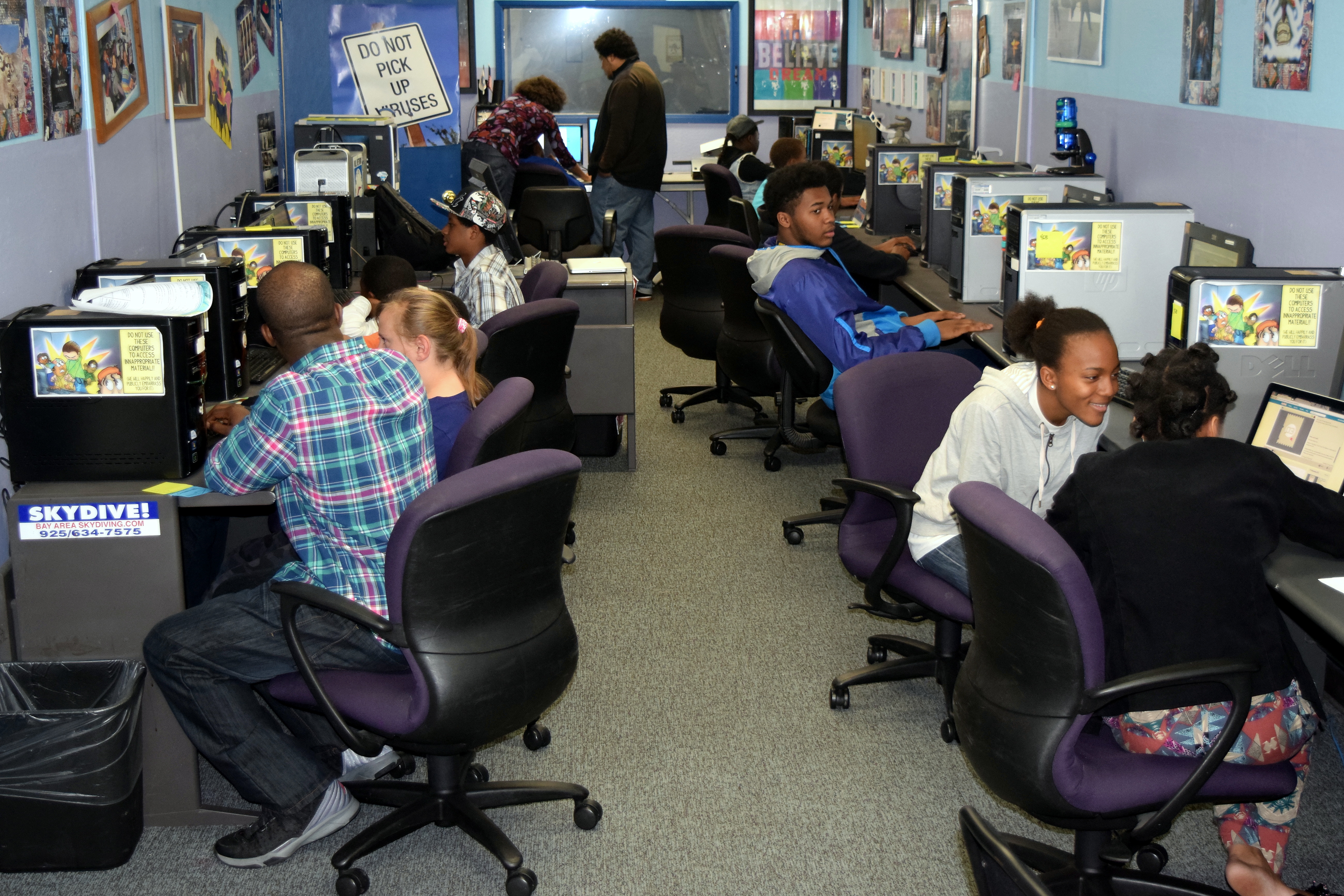 Everyone was invited into the building and ushered into a central room with high ceilings near a stairwell. Guests started to explore the new center and took tours ,offered by the convivial staff/personnel of EOYDC, of the computer lab, art room, administrative office and gymnasium.