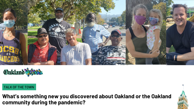 Oakland Voices correspondent Trinity Thompson asked Oakland residents, “What’s something new you discovered about Oakland or the Oakland community during the pandemic?” Their answers are varied and similar, complementary and conflicting, and ultimately reflect the diversity of perspectives and experiences within Oakland.