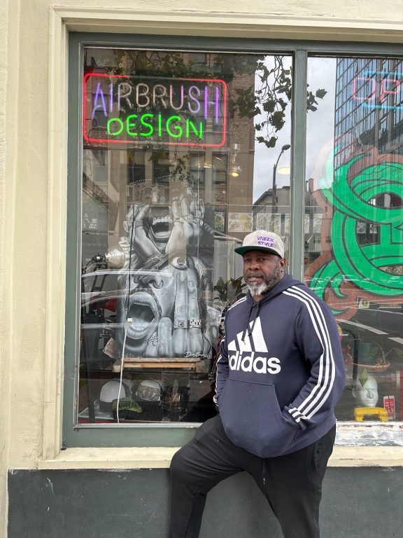 The beauty of Oakland is real! San Francisco is not really California. We have to make a better story about Oakland” When I asked about his painting