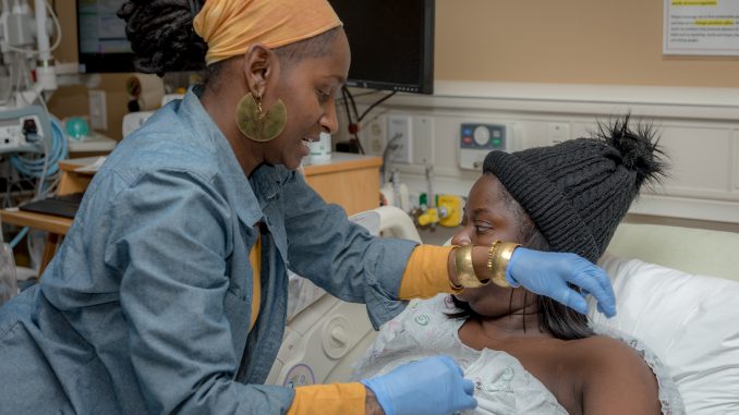 Jaontra Henderson, a full-spectrum doula, collaborates with women in all facets of their birthing journey: from pregnancy and delivery through the post-partum process. She is trained to collaborate with pregnant women and functions as a liaison between the OB-GYN and the mother-to-be. Henderson acts as a coach and counselor. She encourages her clients to speak up, because women often, particularly Black women, do not know they have agency in what is going on with their own bodies, Henderson said.