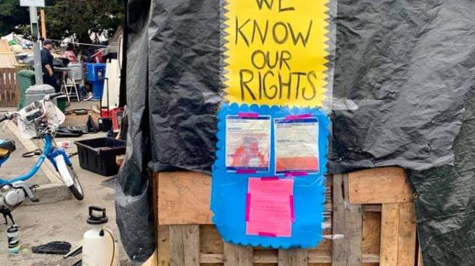 We expect that we will not be offered a few nights in St. Vincent De Paul, or temporary stays in any of the tuff sheds. Many of us do not accept St. Vincent De Paul or similar nightly beds as an adequate shelter option to our shanty town on E12th. In fact, our shanty town provides us with more stability and community than any nightly shelter bed from 5pm to 7am could ever offer us. And many of us have already been in tuff sheds and palette homes and exited right back out to the streets when our “time was up.”