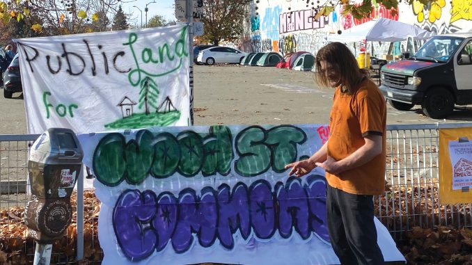 But organizers acknowledge that a project of this size will take years to come to fruition. For the time being, they have set their sights on grabbing the attention of public officials to help them develop alternative, sanctioned communities on unused lots of land to protect unhoused individuals from the risks to health and property associated with encampment sweeps.