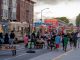 Opening procession of BAM Film Festival on August 1 on Broadway in Oakland. Film festival co-founders Ayodele Nzinga, center in Black, and Shaka Jamal Redmond, far right. Photo: Rasheed Shabazz.