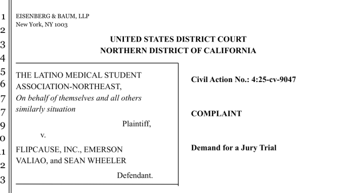 The lawsuit, Latino Medical Student Association-Northeast v. Flipcause, Inc. et al., has case number 4:2025cv09047.