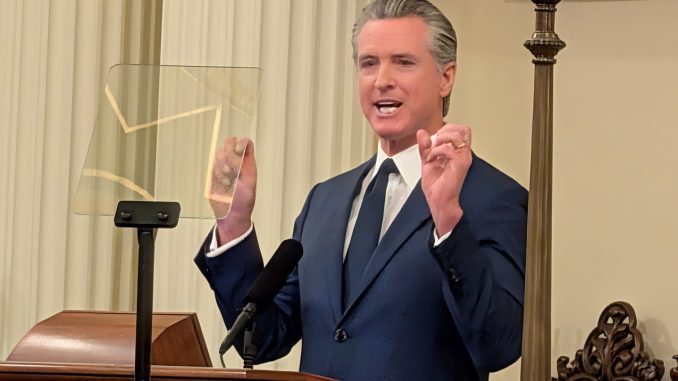 “Every year, the declinists, the pundits and critics suffering from California derangement syndrome look at this state and try to tear down our progress. But California’s success is not by chance — it’s by design,” Newsom said.