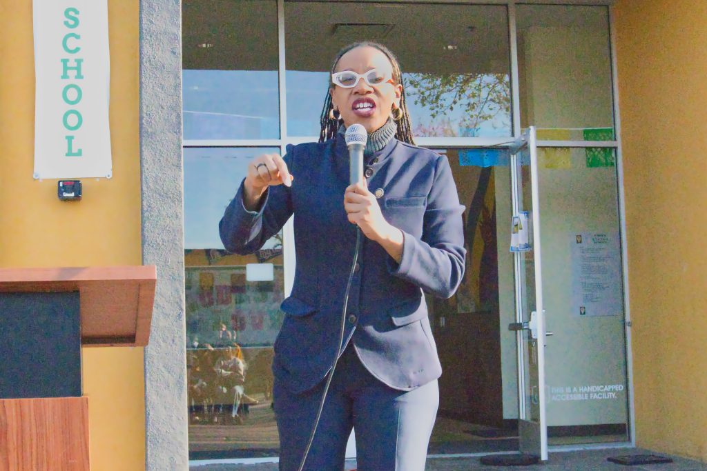 Community leaders and elected officials joined the opening ceremony at Lodestar School on 105th, including At-Large City Councilmember Rowena Brown, Assemblymember Mia Bonta, and Congresswoman Lateefah Simon.