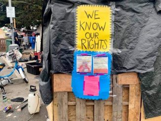 The Housing and Dignity Project, a coalition that includes The Village, Wood Street Commons and Oakland Revealed, rallied outside the apartments on Feb. 10. They called on the City of Oakland, Alameda County, the developers and property managers to clarify the building’s status and provide immediate housing assistance.